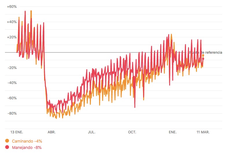 Por cierto, esa misma aplicación, indica que a un año de lejanía, hoy la movilidad está entre un -4% y -8% de lo normal establecido antes de la pandemia, es decir, que prácticamente la mayoría de la gente ya regresó a hacer sus actividades normales.