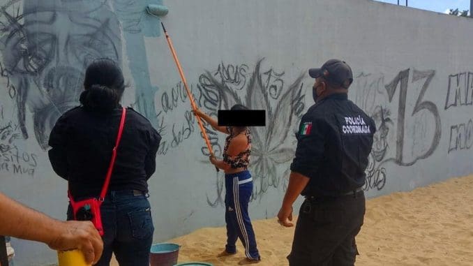 #ImagenDeLaNoticia | Un sujeto fue castigado por vandalizar un muro recién pintado en Huhí.