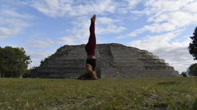#ImagenDeLaNoticia | Gran interés ha despertado el Kinam, disciplina que se presenta previo al «Festival Páayt’aan, espiritualidad y música del mundo», que tendrá lugar en Izamal del 17 al 20 de marzo. La maestra Lili Ollinteotl Molina, originaria de Argentina, señala que el Kinam es reconocido como una técnica de salud emocional y la meditación. La rutina se presentó ayer a los pies de la pirámide Kinich en el Pueblo Mágico de Izamal. «El Kinam reduce la ansiedad, ayuda a dormir mejor y a nivel emociones sirve para armonizar nuestra energía masculina y femenina», afirmó.