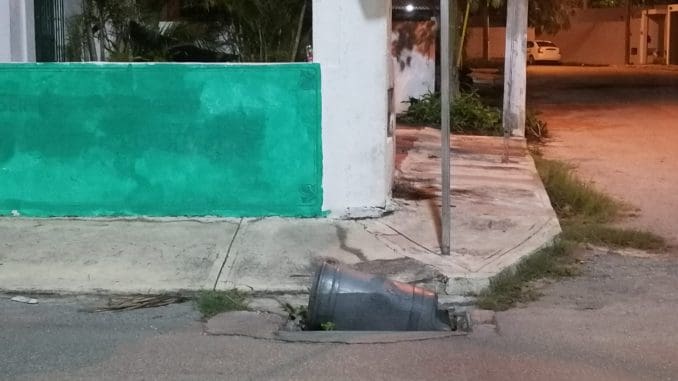 #ImagenDeLaNoticia | En la avenida principal que te lleva a la Xtabay se puede apreciar una peligrosa alcantarilla sin tapa, los vecinos colocaron un bote de basura para que sea visible; la alcantarilla está ubicada en la calle 35 x 48 col. Nueva Yucatán…