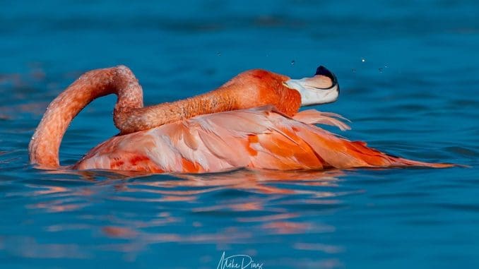 #ImagenDelDía | Los flamencos aprovechan las zonas cercanas a los ojos de agua (naturales y artificiales) para lavarse y arreglar sus plumas, para ello se sumergen cual cisnes para remojar lo más posible sus cuerpos.