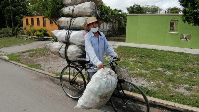 #ImagenDeLaNoticica | Don José, vecino de la colonia Lázaro Cárdenas, es un señor que camina todos los días con 6 bolsas llenas de Pet que lleva para vender y así ganarse para el sustento del día…