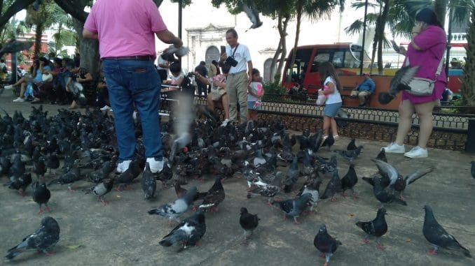 #ImagenDeLaNoticia | Una familia de turistas captó la atención de transeúntes cuando alimentaban a decenas de palomas en la Plaza Grande de Mérida.