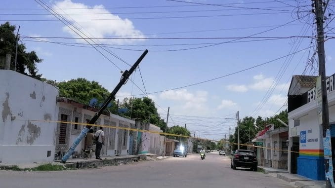 Vecinos del puerto Chicxulub piden a las autoridades reparar un poste, que está a punto de caer en la calle 21 por 22.