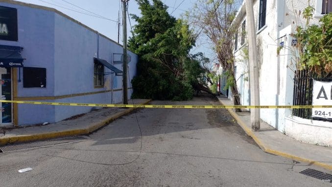 Un enorme árbol se vino abajo en la calle 65 por 72 del centro de Mérida. Vecinos señalan que las lluvias reblandecieron la tierra.