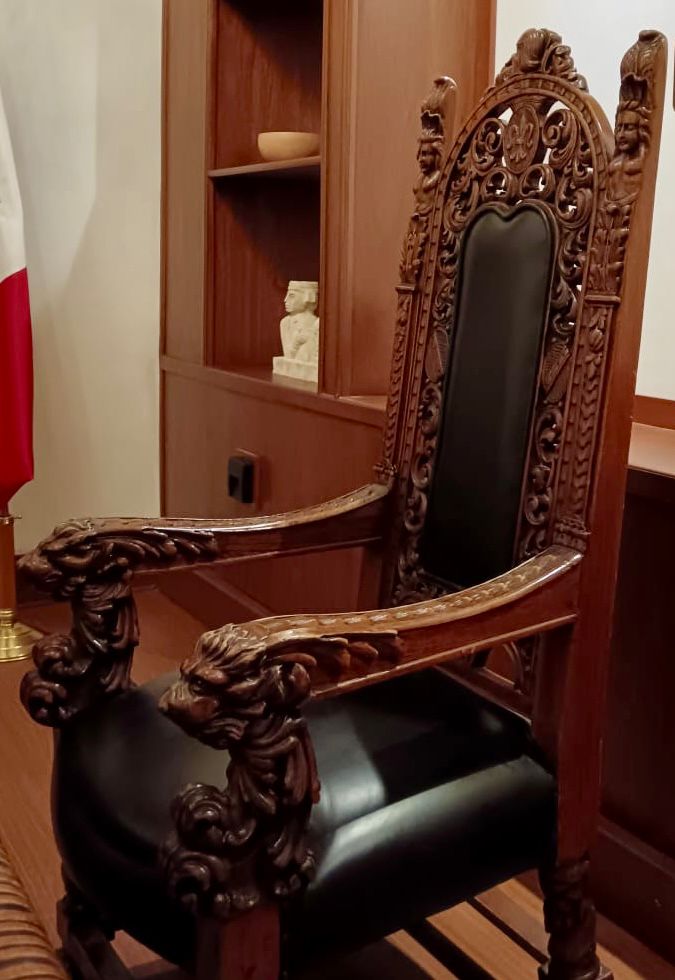 El gobernador Díaz Mena señaló recientemente que en el Despacho principal del Palacio de Gobierno aún no hay silla, la cual está siendo elaborada por artesanos yucatecos y que será entregada en las próximas semanas.