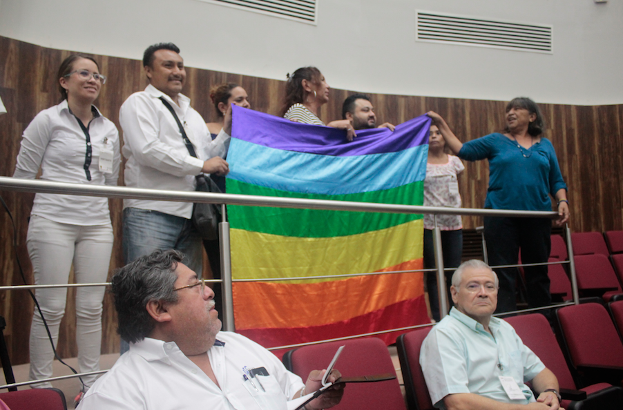 Las activistas Adelaida Salas Salazar y Ligia Vera Gamboa junto con otros ciudadanos intervinieron en la sesión del Pleno del Congreso. Mientras ondeaban una bandera de la comunidad LGBTTTI, expresaron que querían establecer un compromiso con los diputados para que se aborde la mencionada iniciativa antes de que concluya la legislatura. Sin embargo el diputado Daniel Granja Peniche les solicitó “guardar la compostura en el recinto”.