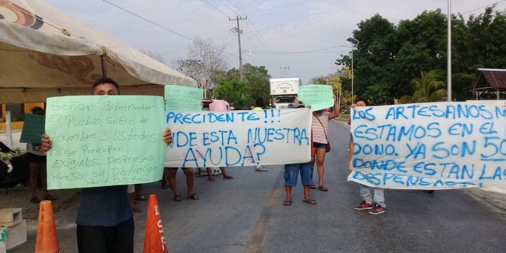 La tarde ayer jueves, unos 150 artesanos y comerciantes se concentraron en la salida de la población de Pisté hacia la ciudad de Mérida, donde manifestaron que desde hace 50 días no trabajan por lo que ya no tienen ingresos, y que la presidenta municipal se niega a darles los apoyos.