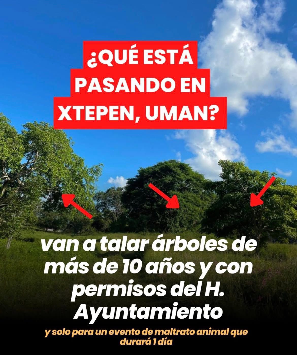 De acuerdo con las denuncias difundidas en plataformas digitales, la tala de árboles en Xtepén, algunos con más de 10 años, fue autorizada alcaldesa Sauri Madariaga, a través de la Dirección de Ecología del Ayuntamiento de Umán.