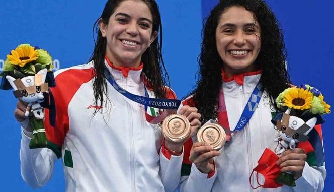 Contra todo pronóstico, las mexicanas se colaron en el podio con una puntuación de 299.7 que significó una ligera ventaja sobre la pareja de Canadá que concluyó con 299.16 unidades y que significó llevarse la medalla de Bronce apenas por debajo de las parejas de China y Estados Unidos que se llevaron oro y plata, respectivamente.