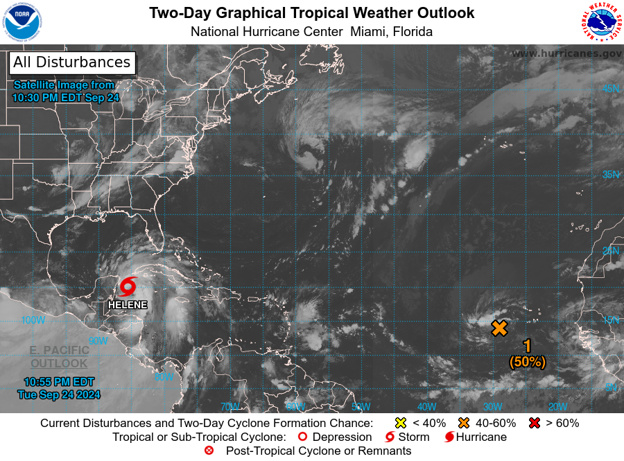 Mérida, 24 de septiembre de 2024.- La tormenta tropical Helene continúa su avance hacia el Canal de Yucatán, por lo cual las autoridades han tomado medidas preventivas.