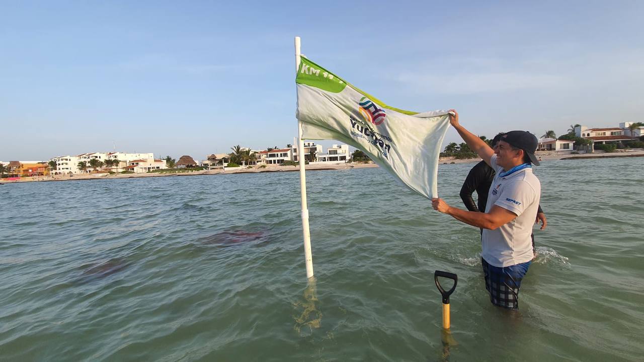 Las 17 banderas se colocarán cercanas a las playas de Chelem, Yucalpetén, Chicxulub, San Miguel, Uaymitún y San Benito, y podrán identificarse porque contarán con la imagen de un animal costero, el número de kilómetro lineal de la carretera costera donde se ubican y los logotipos del Gobierno del Estado.
