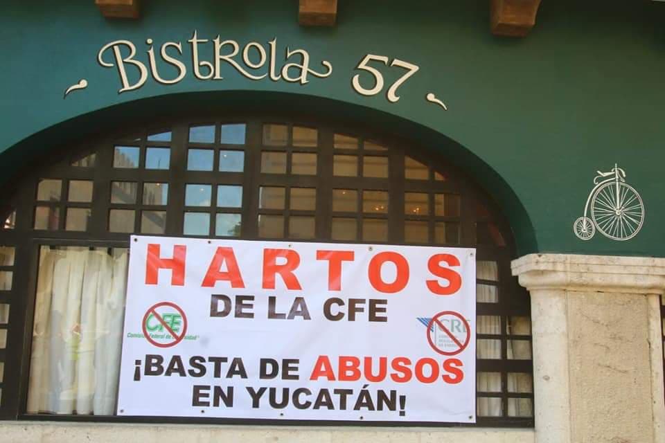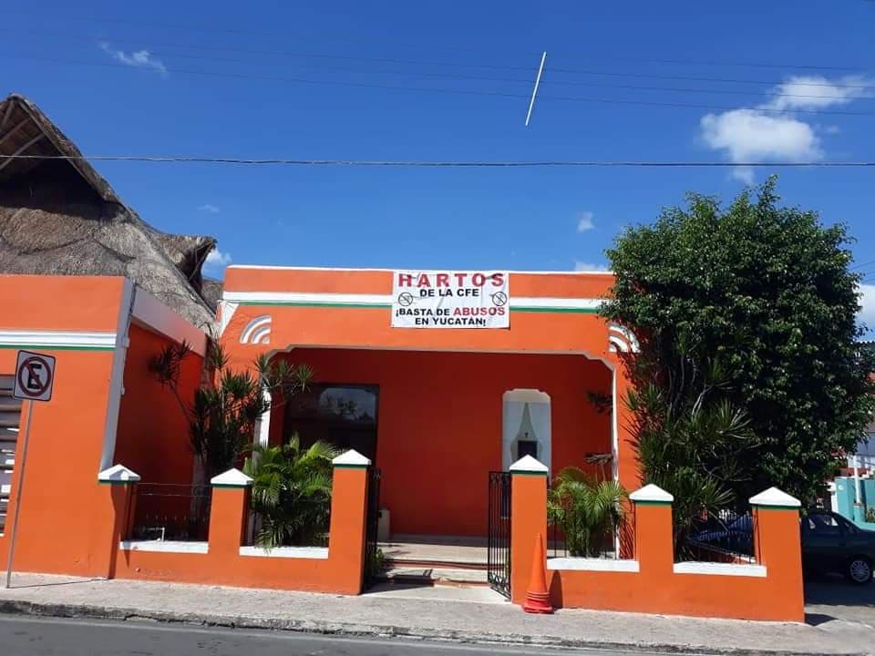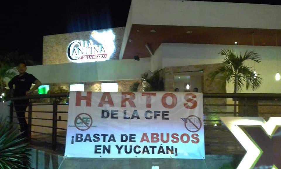 En esas mantas se lee en siguiente mensaje: «Hartos de la CFE. Basta de abusos en Yucatán».