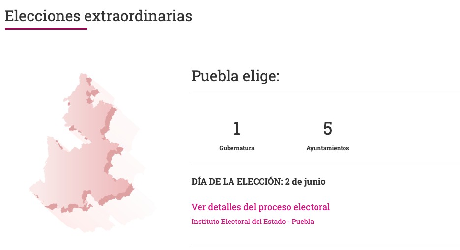 Ciudad de México, 1 de junio de 2019.- Este domingo 2 de junio se realizarán elecciones en seis estados del país: Aguascalientes, Baja California, Durango, Quintana Roo y Tamaulipas, elegirán cargos públicos de manera ordinaria, mientras en Puebla se realizará una elección extraordinaria luego de fallecimiento de la gobernadora Marta Erika Alonso.