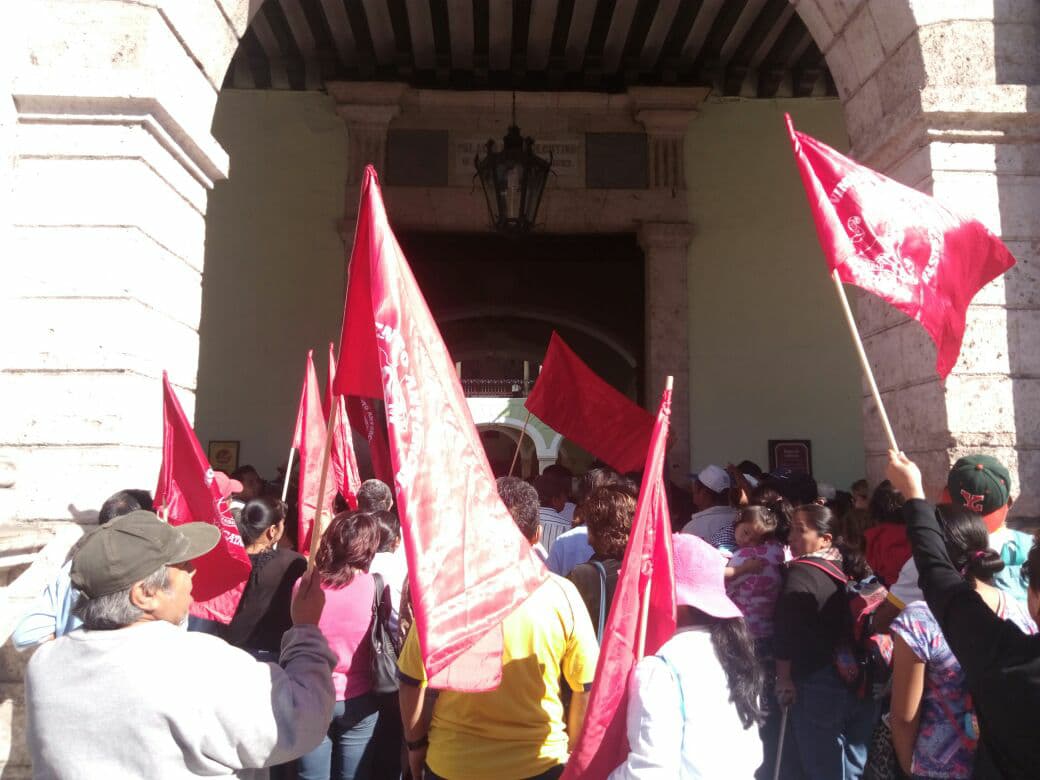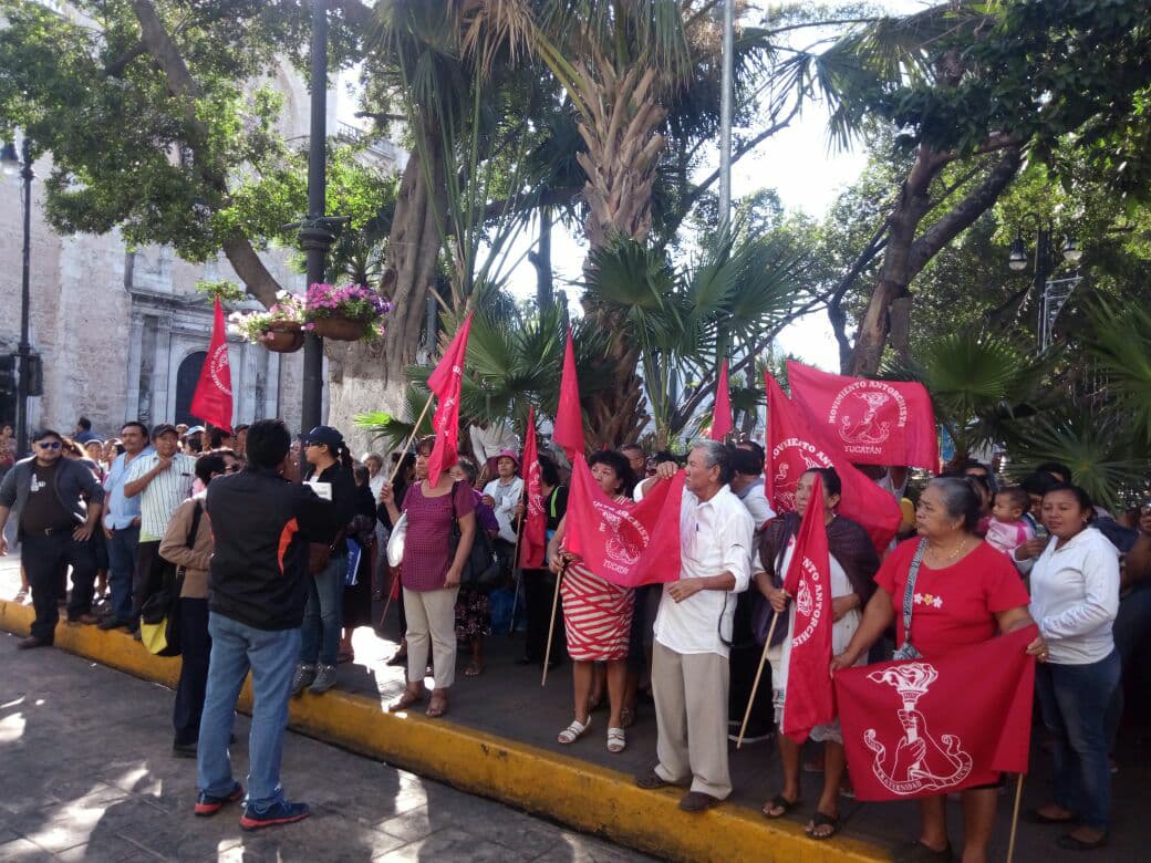 Mérida, Yucatán, 11 de enero de 2018.- Aproximadamente un centenar de integrantes del movimiento Antorcha Campesina en Yucatán realizaron una movilización simultánea en las sedes de la Secretaría de Desarrollo Rural (SEDER) y el Palacio de Gobierno para pedir el cumplimiento de “acciones pendientes” de estas autoridades.