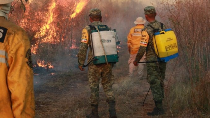 Acanceh, Yucatán, 25 de marzo de 2020.- Militares, bomberos y personal de protección civil lograron extinguir un siniestro cerca del municipio de Acanceh, sin embargo, la rápida movilización no evitó que el fuego consumiera 250 hectáreas en un terreno baldío.