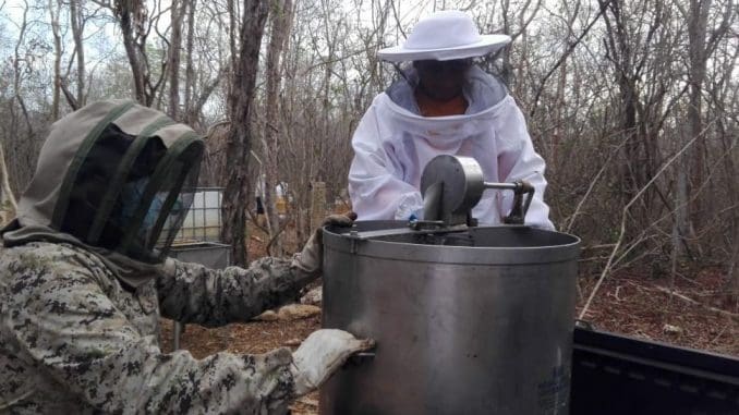 “Después de varios meses de trabajo en un apiario demostrativo, también en el complejo productivo Kinchil, se realizó la primera cosecha del proyecto que dio como resultado 80 kilos de miel proveniente de 10 colmenas”, destacó la promotora de desarrollo apícola de Kekén, Annel Carrillo Rodríguez.