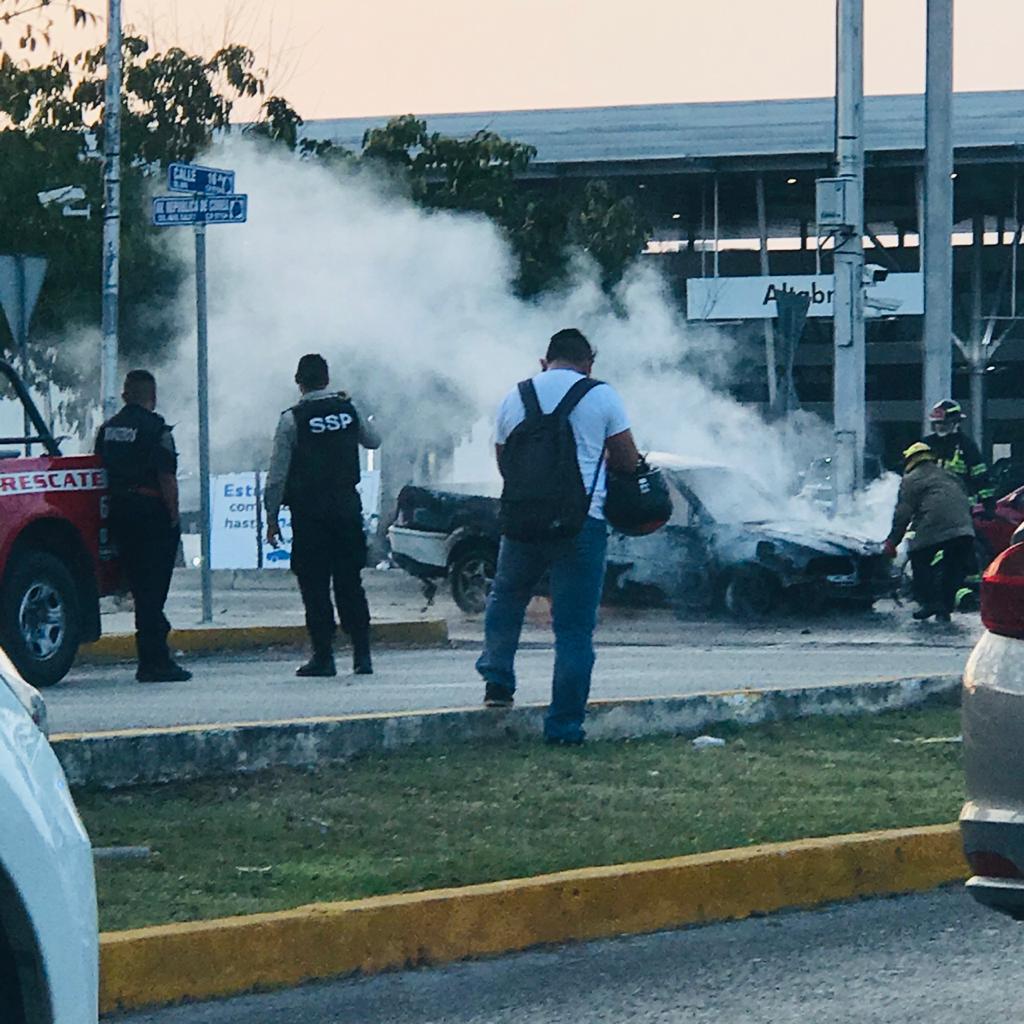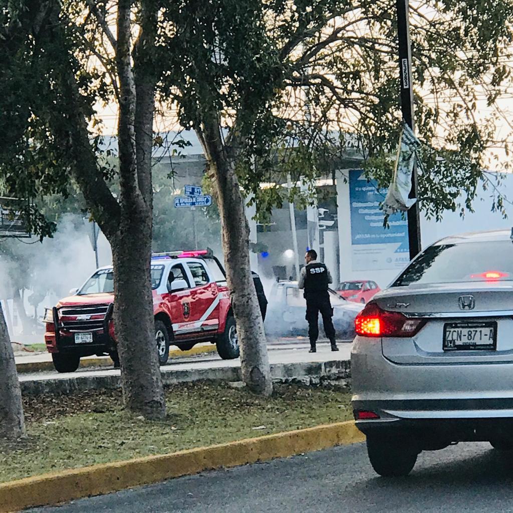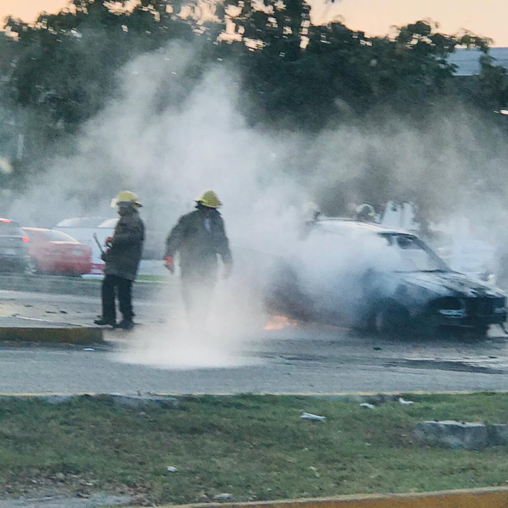 Mérida, Yucatán, 28 de enero de 2020.- Esta tarde, el fuego consumió una camioneta en la “glorieta de la Volkswagen”, en el rumbo de Altabrisa y las llamas solo fueron controladas hasta que llegaron los bomberos.