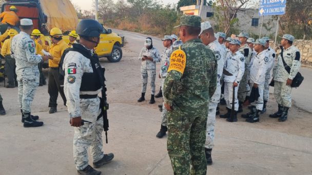 Tekax, a 26 de abril de 2024.- Incendios forestales activaron un plan de emergencia en el sur del estado, lo cual ha movilizado a  elementos de la Secretaría de Seguridad Pública (SSP), de la Defensa Nacional (Sedena), Conafor, Procivy y de la Guardia Nacional.