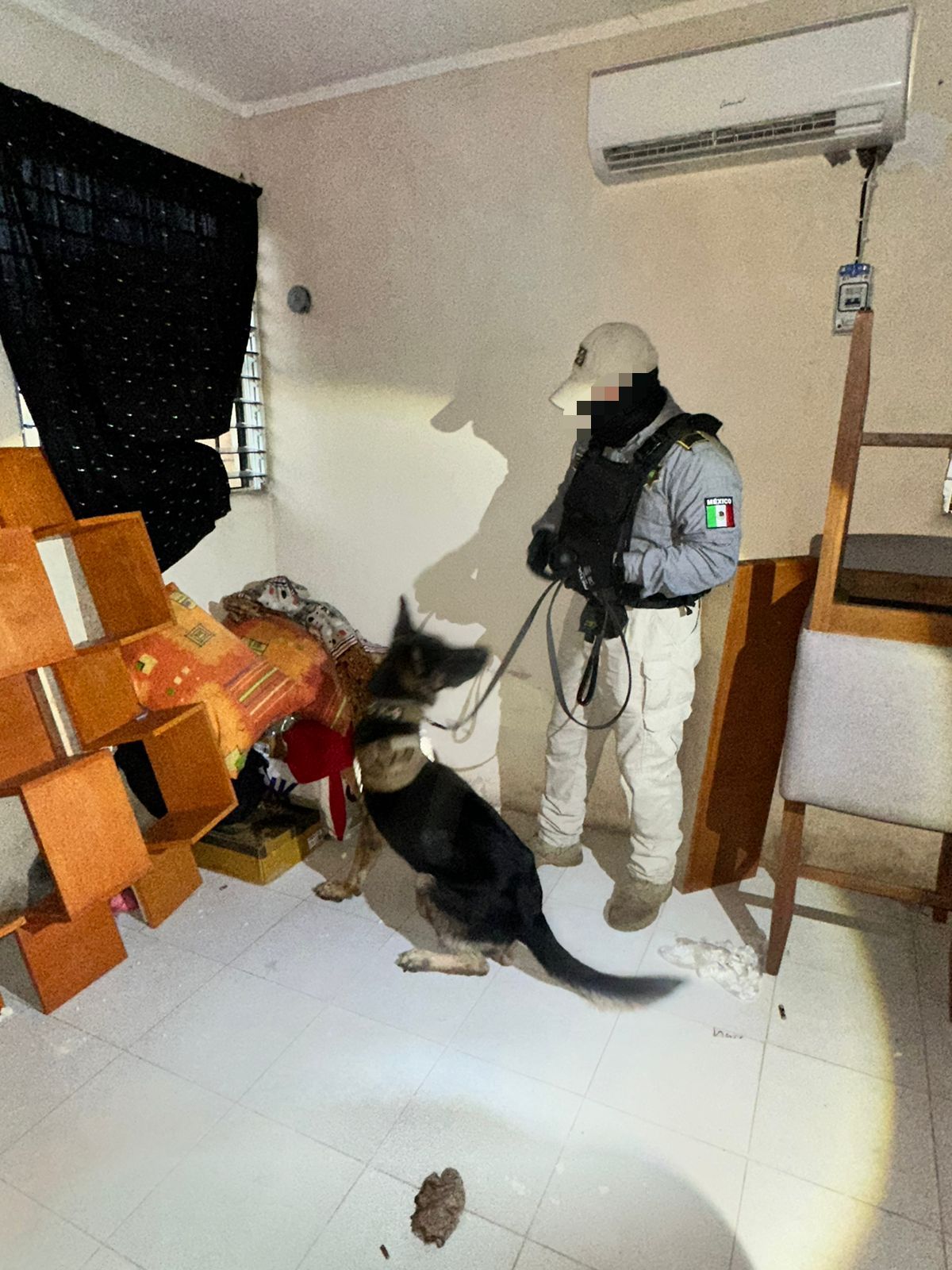 Al ejecutar una orden de cateo en el predio 241 de la calle 107 por 118 del fraccionamiento Jardines de San Francisco, también se encontraron botas tácticas y un pliego de vinilo adhesivo con logotipos apócrifos de dependencias de seguridad pública y procuración de justicia estatales.