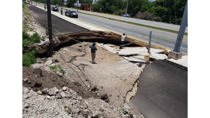 Asombra enorme socavón en la Tulum-Playa del Carmen