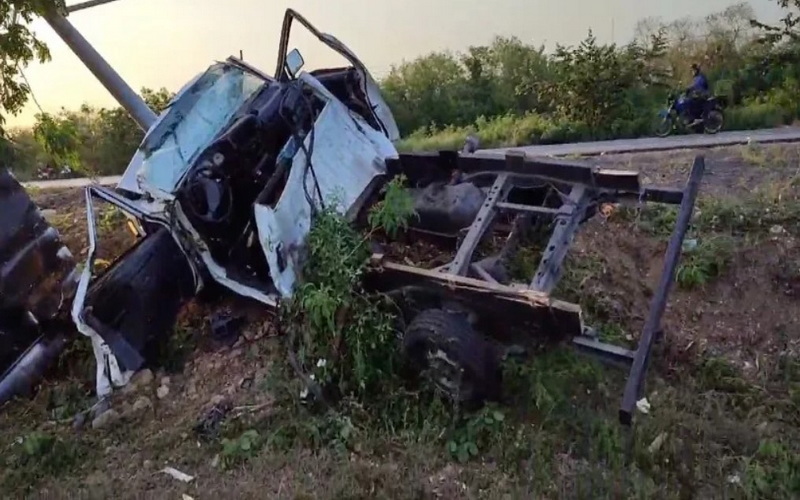 Mérida, Yucatán, 9 de abril de 2022.- Prensado acabó el conductor de una camioneta al estrellarse brutalmente contra un poste de alumbrado público, en el Periférico sur de Mérida.