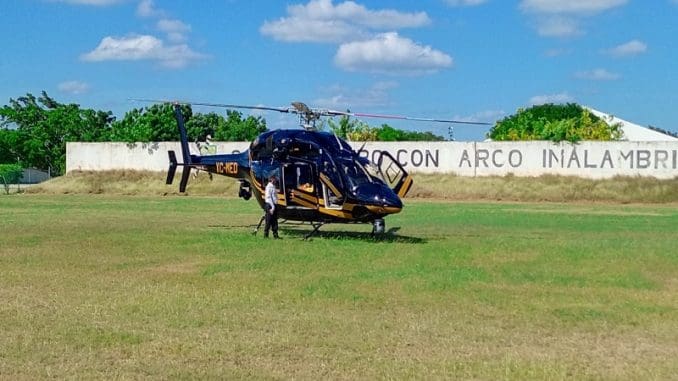 Mérida, Yucatán, 14 de diciembre del 2022.-Ciclista de la tercera edad fue atropellado en la vía muna San Felipe y fue trasladado por el helicóptero de la SSP Yucatán al campo de la inalámbrica.
