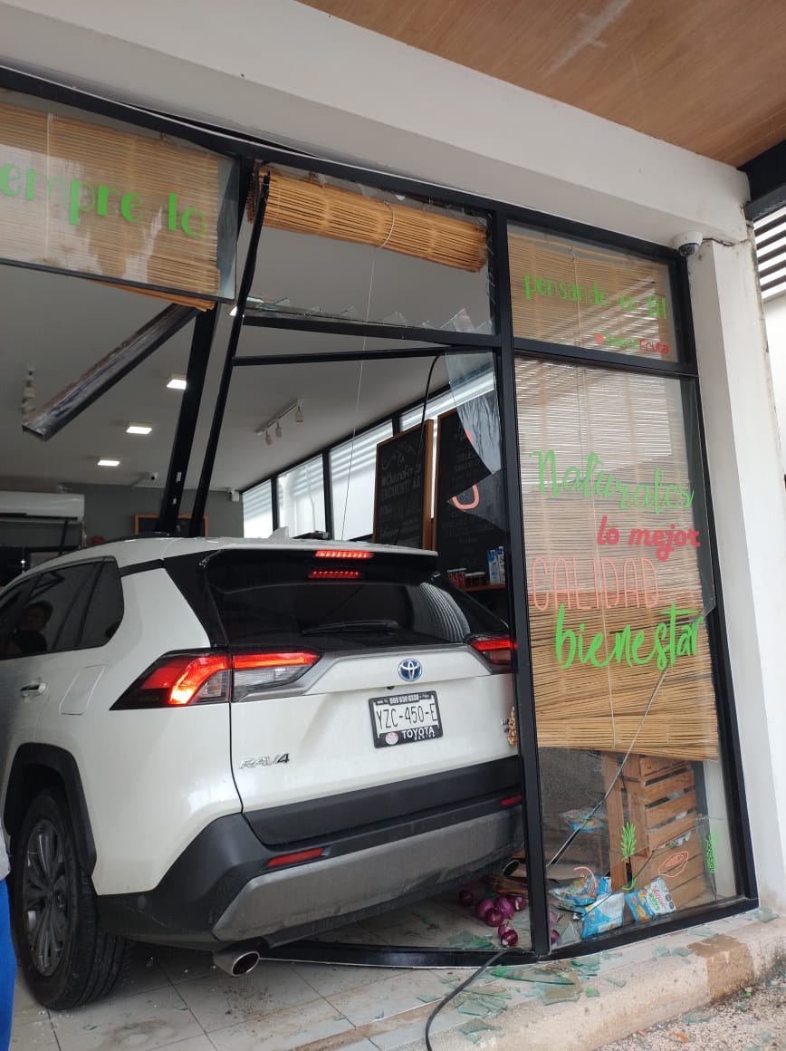 Mérida, a 6 de septiembre de 2024.- Esta tarde, una mujer que al parecer confundió el freno con el acelerador se metió a una tienda de frutas del Fraccionamiento Real Montejo, que se ubica en la calle 51 entre 72-A y 74.
