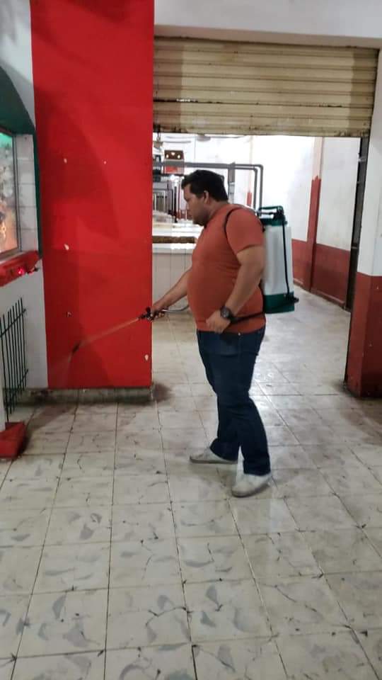 Sin botas, trajes especiales, guantes o cubre bocas, realizaron trabajos de sanitización y desinfección en los mercados municipales y espacios públicos de la entidad municipal.