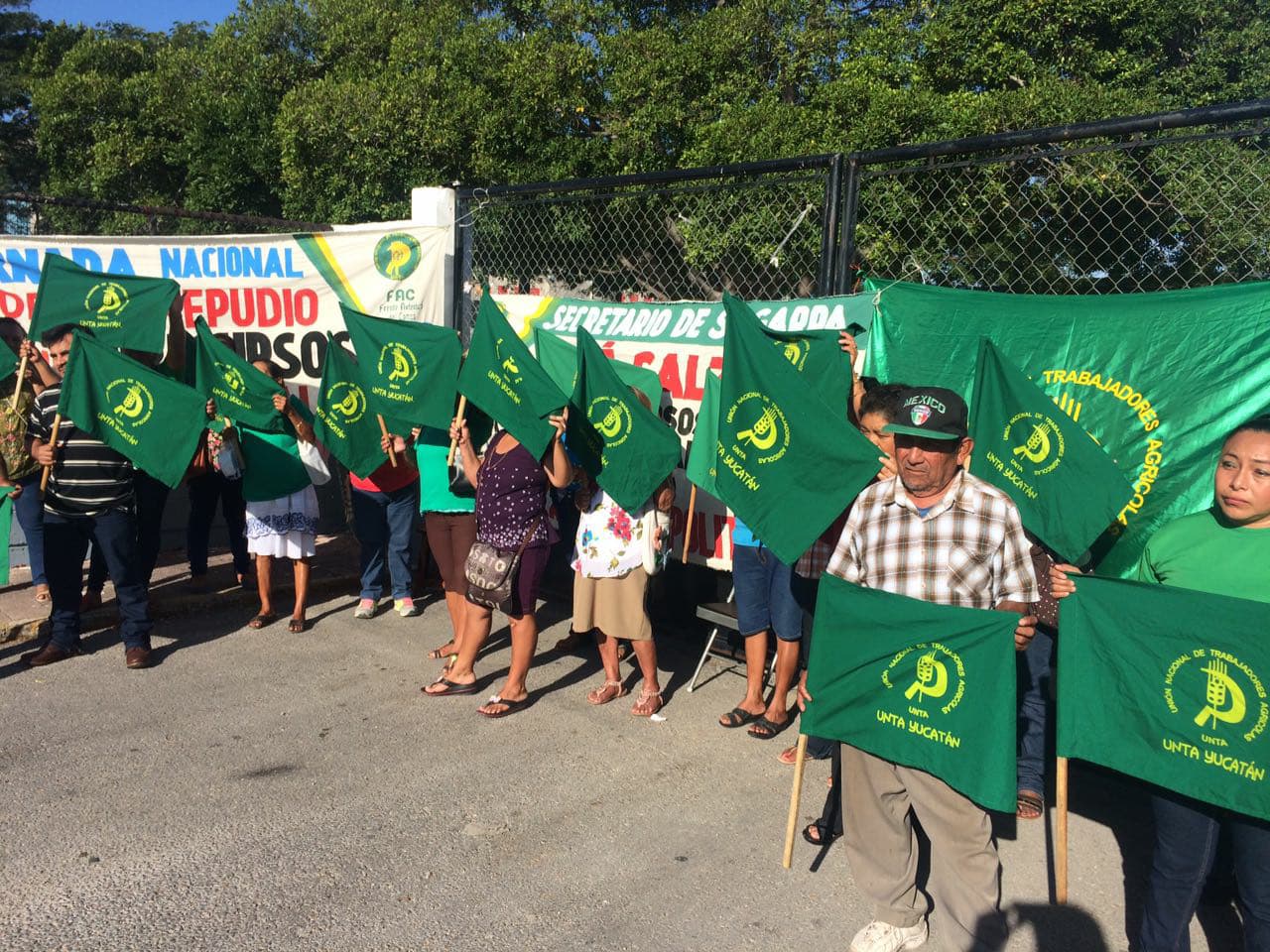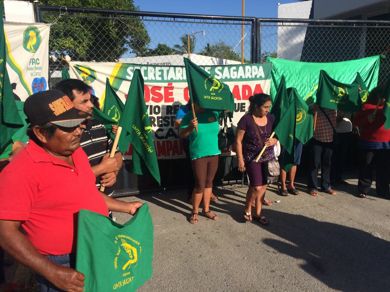 Mérida, Yucatán, 19 de febrero de 2018.– Integrantes de la Unión Nacional de Trabajadores Agrícolas (UNTA) de Yucatán bloquearon desde temprana hora las instalaciones de la delegación de la Secretaría de Agricultura, Ganadería, Desarrollo Rural, Pesca y Alimentación (Sagarpa), exigiendo el pago de recursos de programas en apicultura y ganadería que les aprobaron desde 2017.