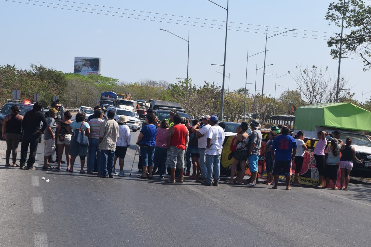 A manera de presión, los colonos bloquearon parcialmente el periférico, cerca de la entrada del fraccionamiento Francisco de Montejo, provocando un fuerte congestionamiento vial.
