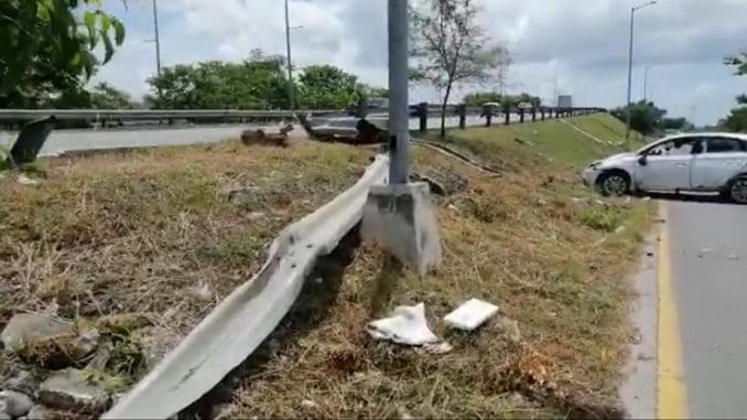 El Nissan Sentra, con placas de Veracruz, se salió por el costado derecho proyectándose con la barra metálica instalada en la peligrosa vía.