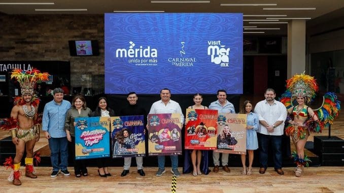 Mérida, Yucatán, 27 de diciembre de 2022.- Autoridades municipales de Mérida dieron a conocer esta mañana los detalles del Carnaval de Mérida 2023, el cual se realizará 15 al 22 de febrero en el recinto ferial de Xmatkuil donde se pretende la llegada de artistas como Gloria Trevi, Grupo Cañaveral, Belinda, por mencionar algunos.