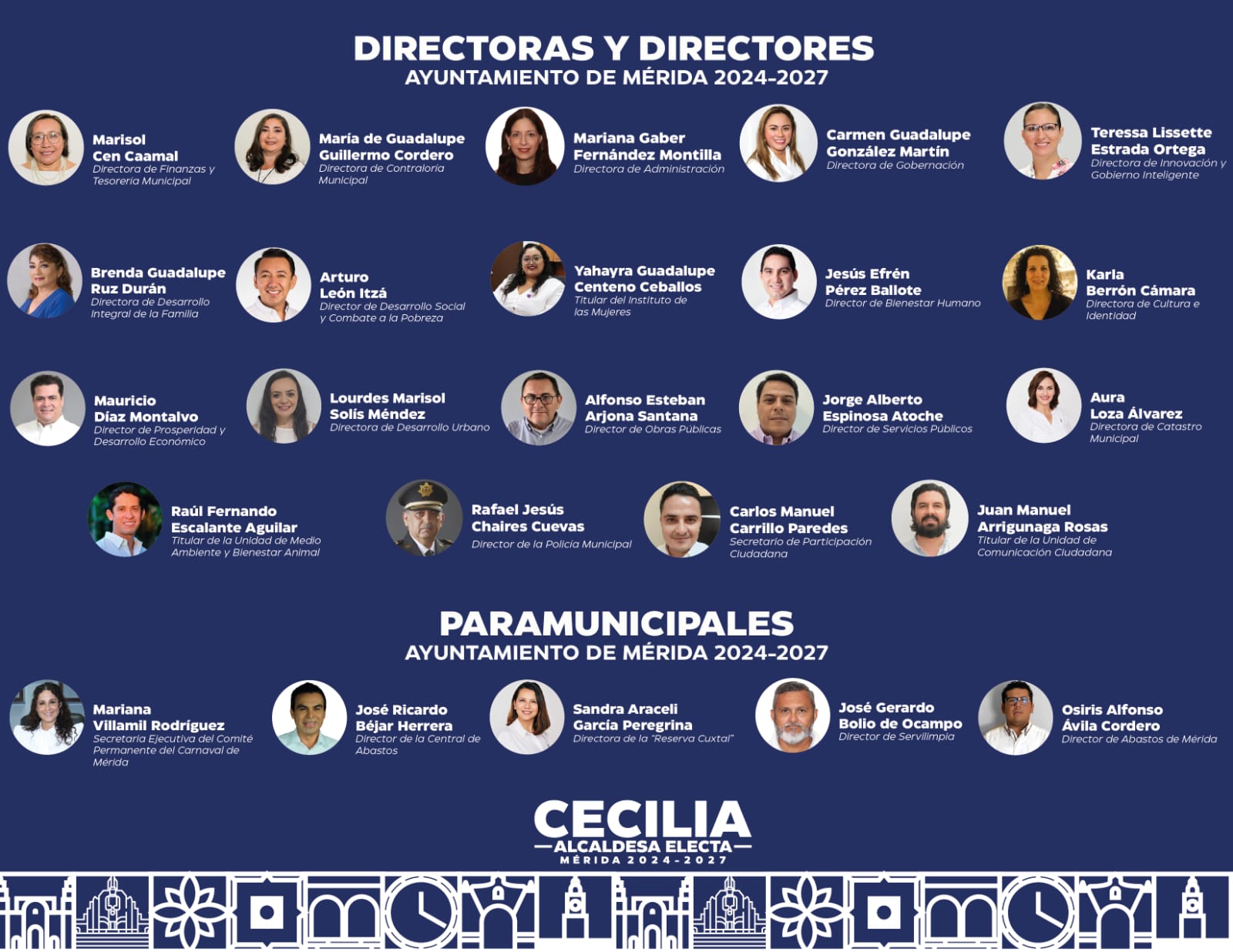 Sector administrativo y de gobierno: Contadora Pública Marisol Cen Caamal, titular de la Dirección de Finanzas y Tesorería Municipal; Contadora Pública María Guadalupe Guillermo Cordero, Dirección de Contraloría Municipal; Licenciada en Administración Mariana Gaber Fernández Montilla, Dirección de Administración; Licenciada en Derecho Carmen Guadalupe González Martín, Dirección de Gobernación, y Licenciada en Sistemas Computacionales Teresa Lissette Estrada Ortega, Dirección de Innovación y Gobierno Inteligente.