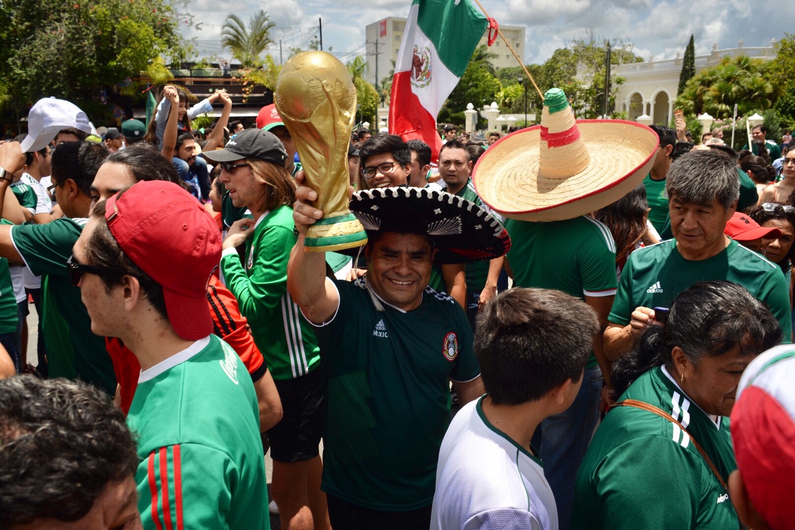 Poco a poco fueron llegando decenas de personas vestidas con la playera de la Selección Mexicana, cargando banderas tricolores y vitoreando la segunda victoria al hilo del representativo nacional en el Mundial de Rusia.