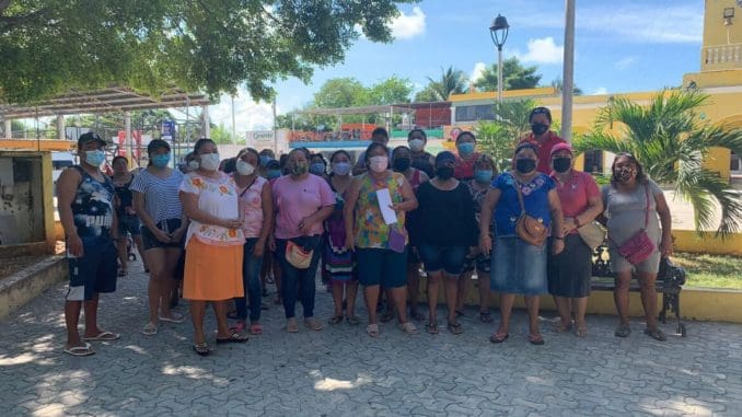 Celestún, Yucatán, 8 de octubre de 2021.- Empleadas del Ayuntamiento de Celestún advirtieron que irán a huelga, ya que por órdenes del alcalde, José Ramírez Perera, les fueron reducidos el monto de sus salarios.