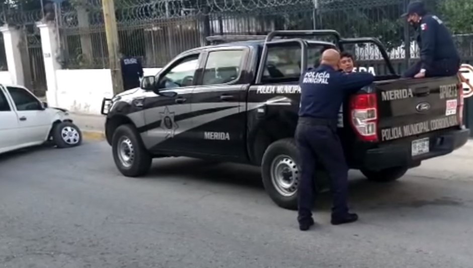 Mérida, Yucatán, 20 de diciembre de 2020.- Un conductor en estado de ebriedad fue detenido en el mercado de Santiago donde había acudido después de chocar contra un poste de luz y abandonar su vehículo a media calle.