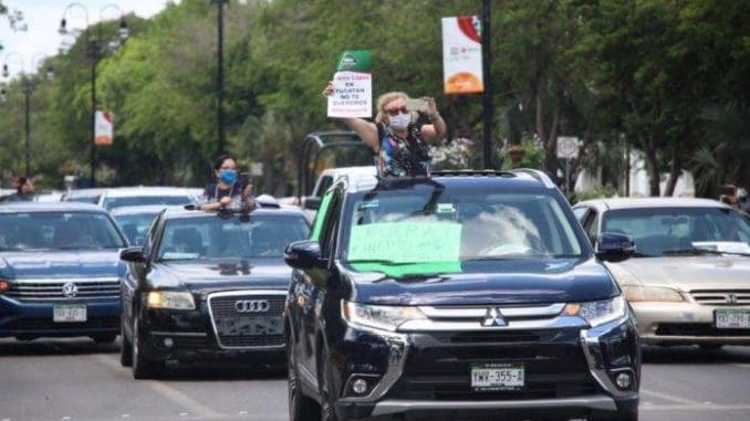 Mérida, Yucatán, 11 de julio de 2020.– Nuevamente una caravana de conductores adentro de sus vehículos salieron a manifestarse en contra el presidente Andrés Manuel López Obrador. Durante la protesta incluyeron batucadas y claxonazos.