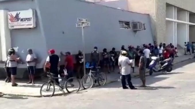 Progreso, Yucatán, 28 de mayo de 2020.- Sin sana distancia, más de 100 pescadores se concentraron esta mañana alrededor del edificio de Correos ubicado sobre la calle 31, en el centro de la ciudad y puerto de Progreso.