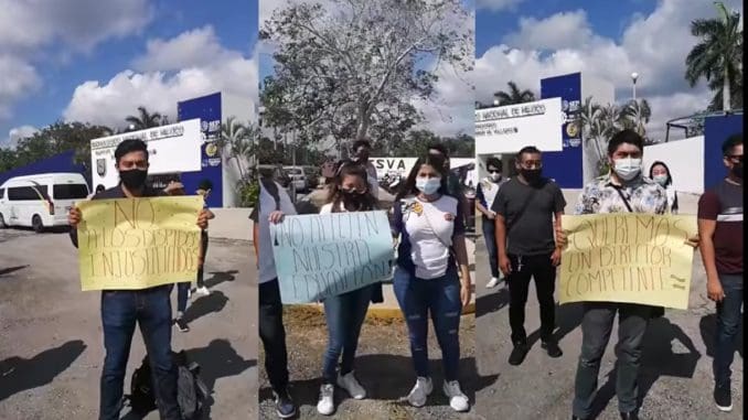 Mérida, Yucatán, 22 de enero de 2020.– Los profesores despedidos presuntamente de manera injustificada en el Instituto Tecnológico Superior de Valladolid (ITSVA) informaron que la manifestación pacífica en contra de su director, Mario Aguilar Díaz, continuará, pues hasta el momento la mesa de diálogo no ha prosperado.