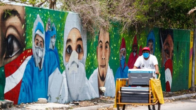 Datoer trabaja en otro mural, que está a punto de concluir, en un espacio que se ubica en la calle 22 por 27 en el fraccionamiento Juan Pablo II, a dos esquinas de la clínica del Instituto Mexicano del Seguro Social (IMSS), el cual también es un homenaje al personal de salud.