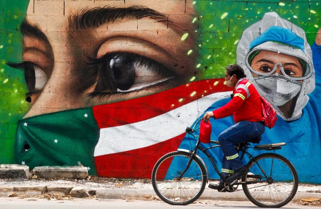 “En este mural se observa a una niña que toca el rostro de un trabajador, que puede ser un enfermero, médico o paramédico; esta imagen nos recuerda que estas personas salen de sus casas todos los días, pero no saben si regresarán, incluso muchas ya no regresan por temor a contagiar a sus familias”, señaló.