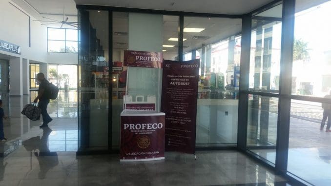 En la nueva terminal CAME de Mérida, un módulo de la Profeco delegación Yucatán luce totalmente abandonado y sin que nadie pueda asesorar a algún pasajero que lo necesite. «¿Tienes algún problema con tu viaje en autobús», dice la pancarta.
