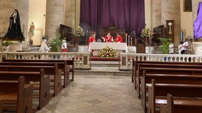 Católicos yucatecos siguen en redes sociales la misa del Jueves Santo, que se celebró a puerta cerrada en Catedral