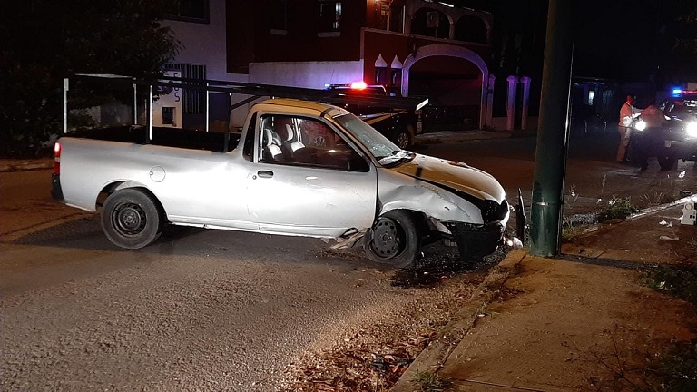 Al llegar a la altura de las calles 37 y 39 A perdió el control y chocó contra un poste metálico de la Comisión Federal de Electricidad (CFE). Vecinos de la zona de inmediato llamaron a los números de emergencia.