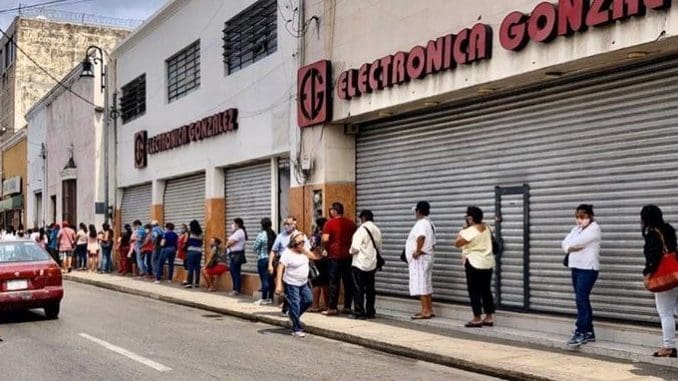 Mérida, Yucatán, 4 de mayo de 2020.- Este lunes, a temprana hora, decenas de personas hicieron largas filas para realizar un empeño en el Monte de Piedad, ubicado en la calle 69 por 58 del centro histórico de la ciudad.