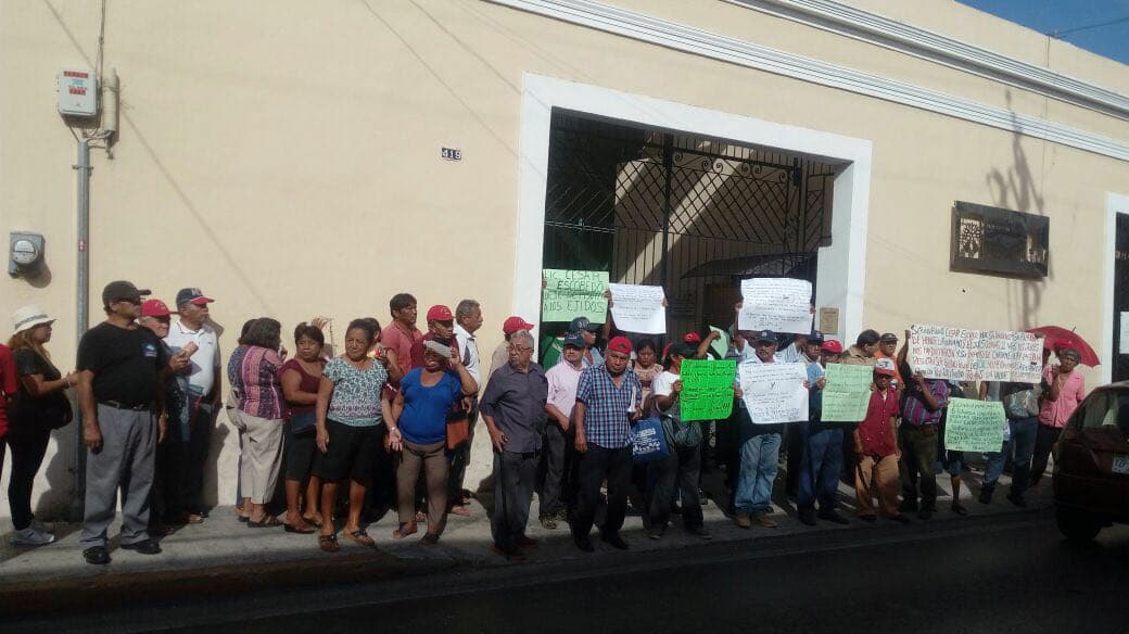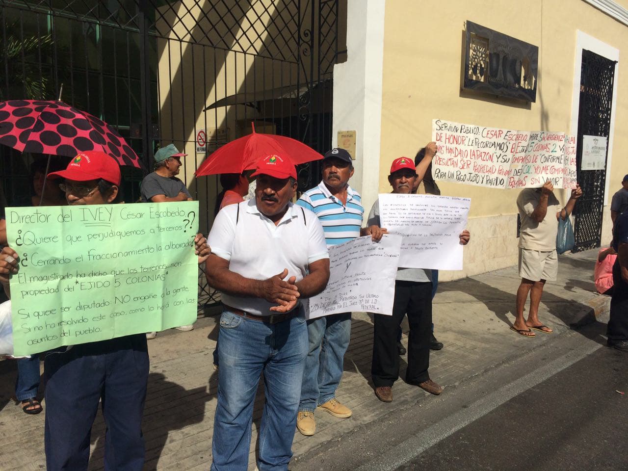 Mérida, Yucatán, 8 de febrero de 2018.– Aproximadamente 50 ejidatarios de Cinco Colonias bloquearon desde temprana hora la entrada a las instalaciones del Instituto Estatal de Vivienda (IVEY), exigiendo el pago de 78 millones de pesos por sus terrenos, en donde dicha dependencia estatal construyó un fraccionamiento.