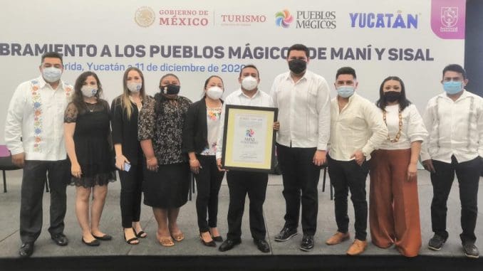 Mérida, Yucatán, 11 de diciembre de 2020.– Esta mañana el Gobierno del Estado, en conjunto con la Secretaría de Turismo federal, entregaron el nombramiento como Pueblos Mágicos al municipio de Maní y a la comisaria de Sisal, del municipio de Hunucmá.