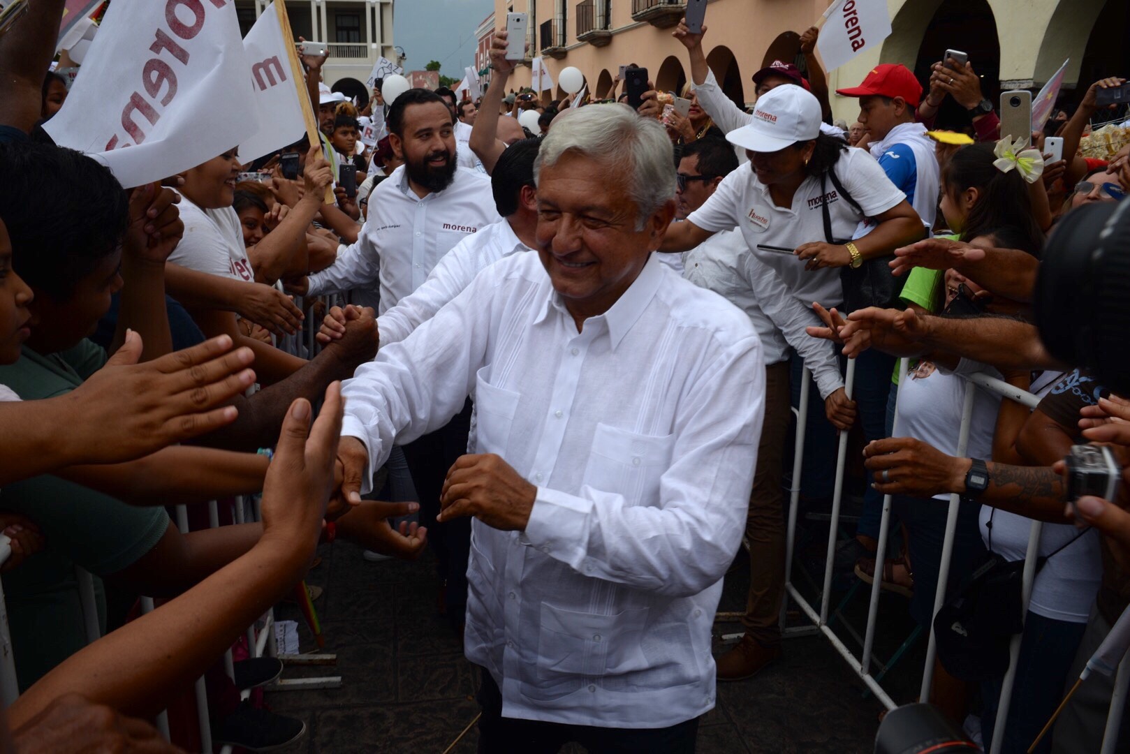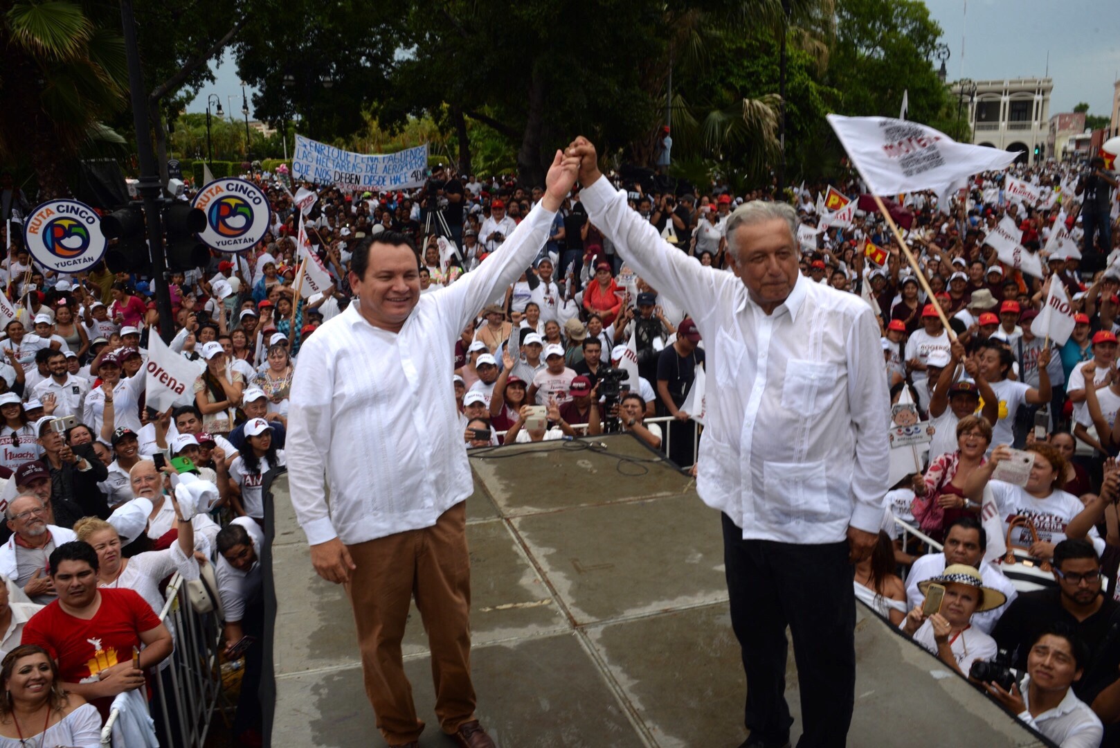 López Obrador llegó a Mérida para acompañar al candidato a gobernador de Yucatán por Morena, Joaquín Díaz Mena en su cierre de campaña en el Centro Histórico, y en el acto pidió a la gente que, por cuestiones políticas, voten parejo para todos los candidatos de la coalición.