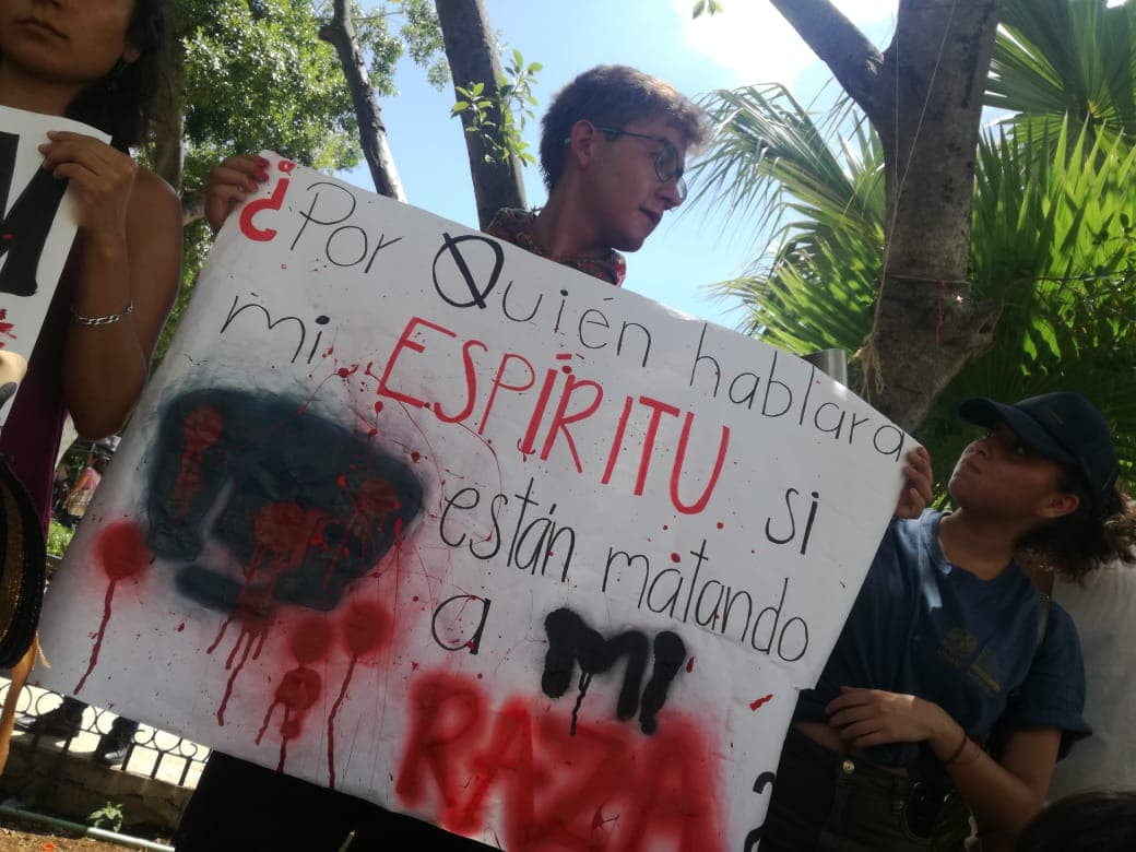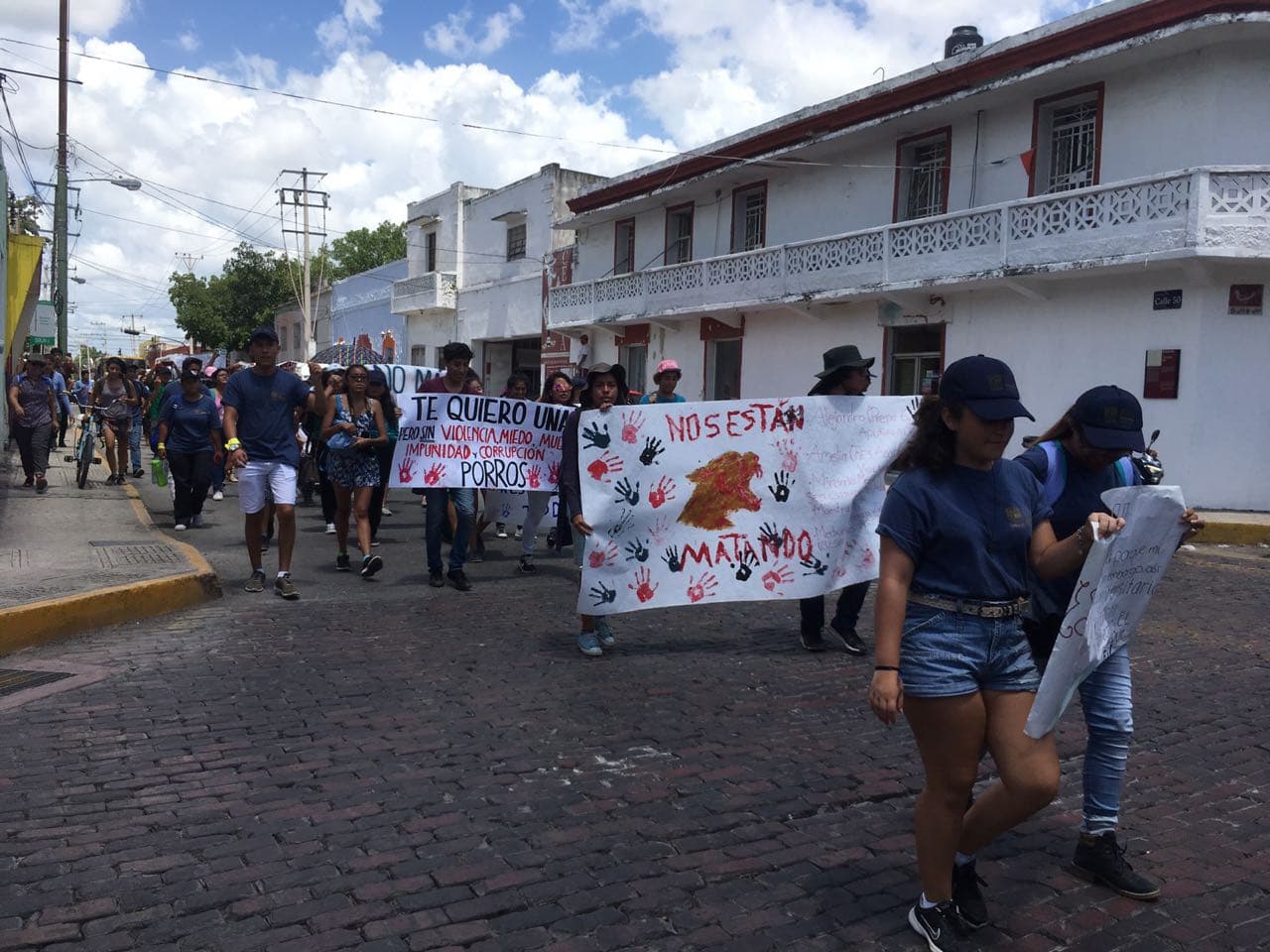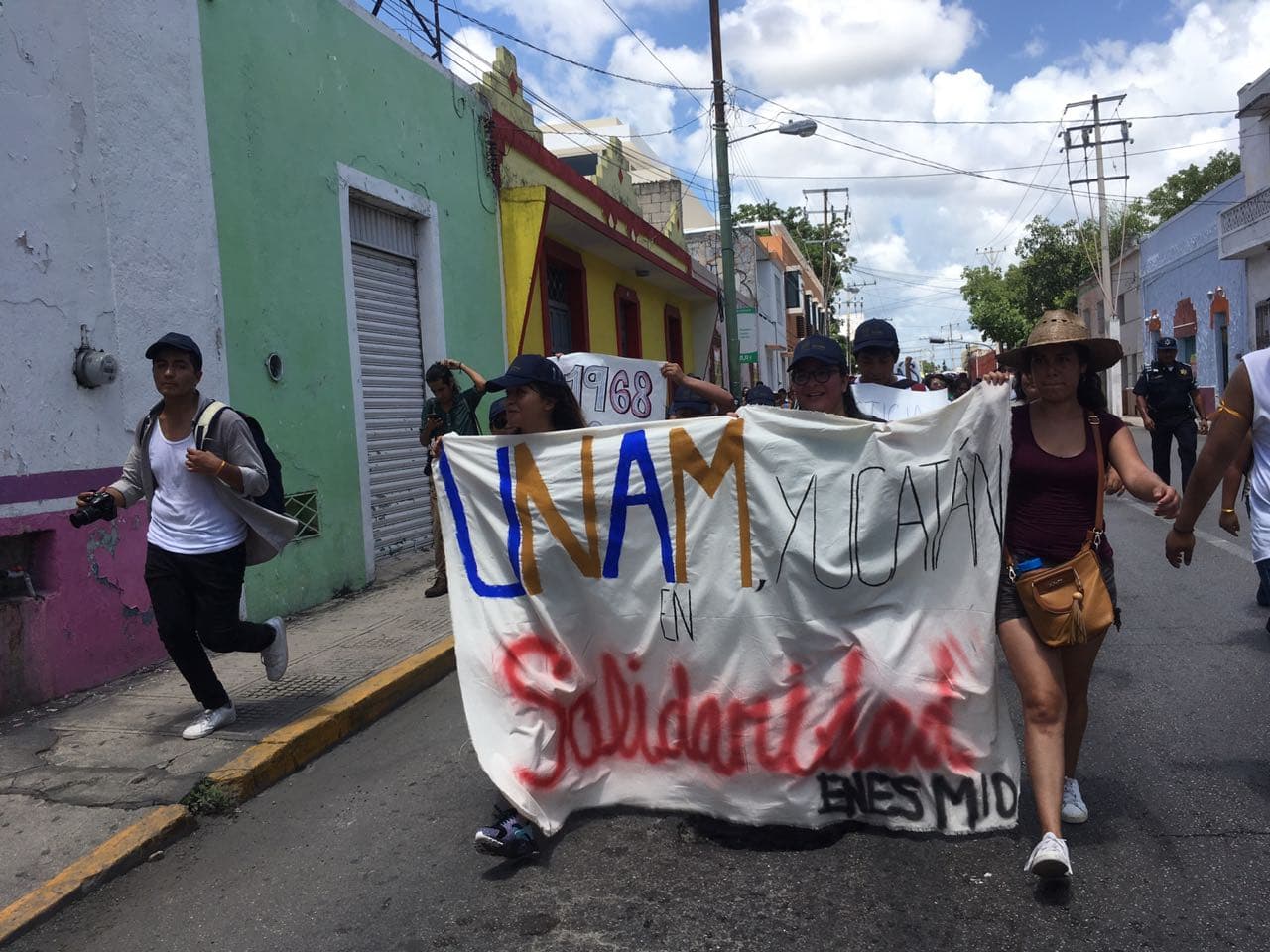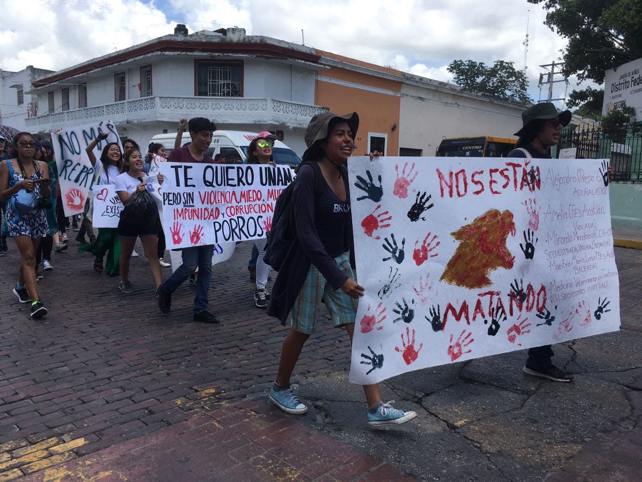 Hacia las 12:30 horas cerca de 90 alumnos de la Universidad en el estado se congregaron en el Remate del Paseo de Montejo con pancartas en las que se leía “Nos están matando” y “Fuera porros de la UNAM”. El estudiante José Gabriel González Rodríguez explicó que marcharían para expresar su solidaridad con las víctimas de los incidentes violentos y para exigir que no ocurran de nuevo esos actos.